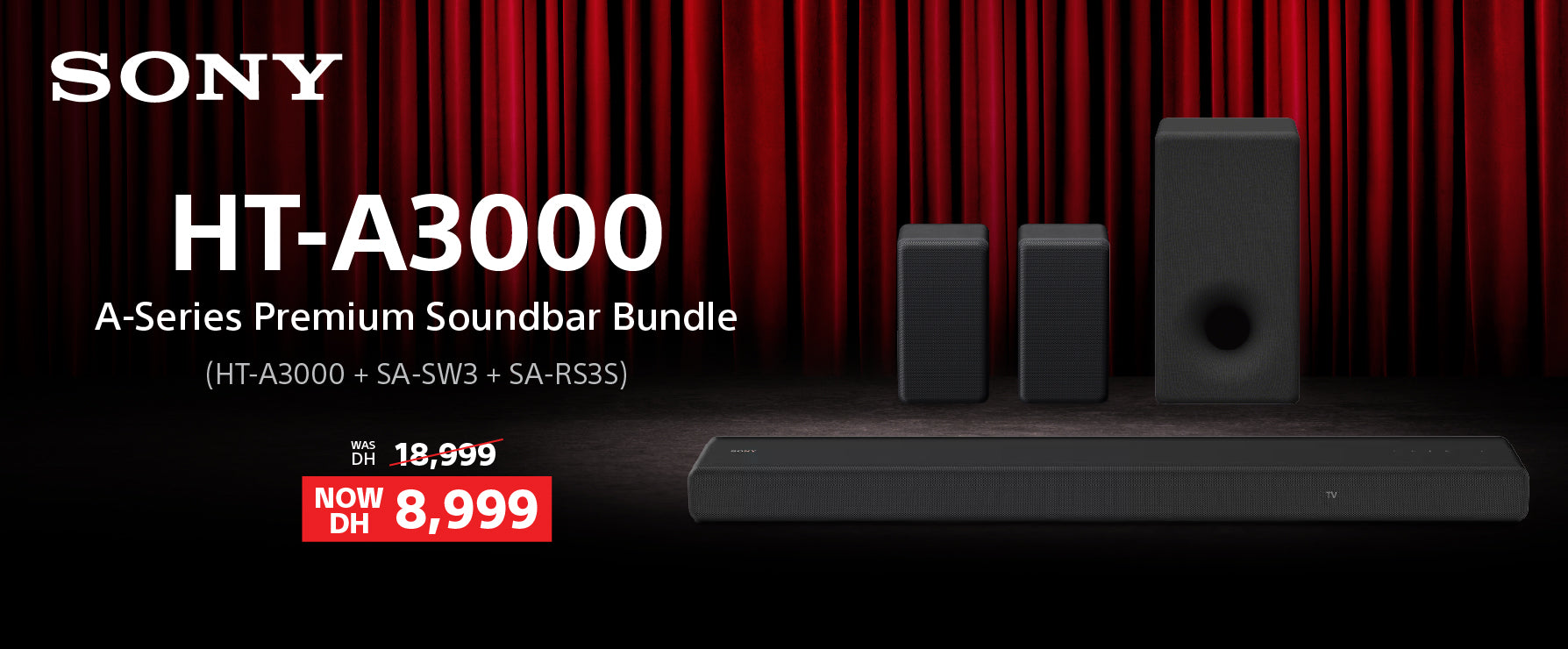 Sony HT-A3000 - 360 Spatial Sound Mapping Dolby Atmos® / DTS:X® 3.1ch Soundbar with SA-SW3 Subwoofer and SA-RS3S Rear Speakers